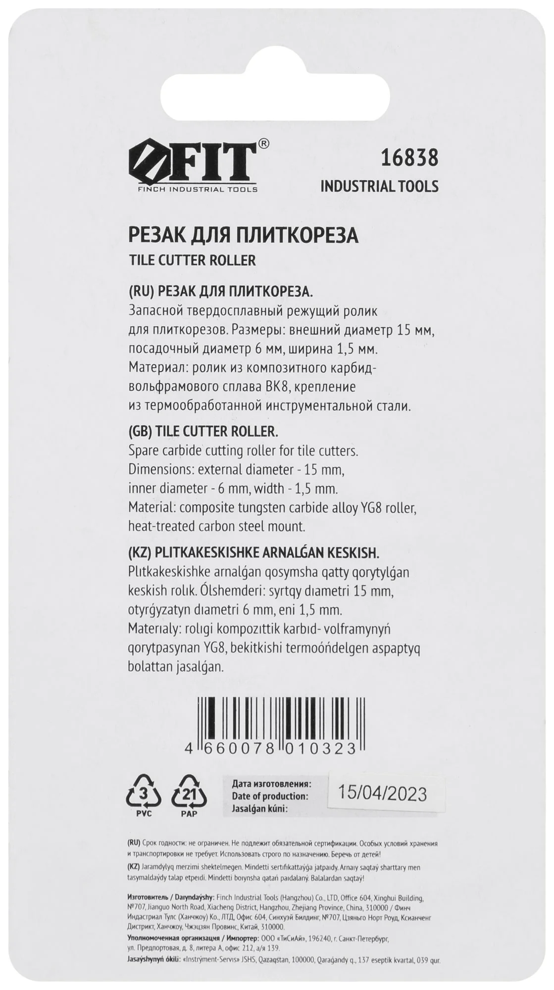 Резак для плиткореза FIT размером 15х6х1.5 мм незаменим в условиях, когда требуется точная и аккуратная резка плитки. Идеален для профессионалов, работающих с различными видами плитки, от керамической до каменной.