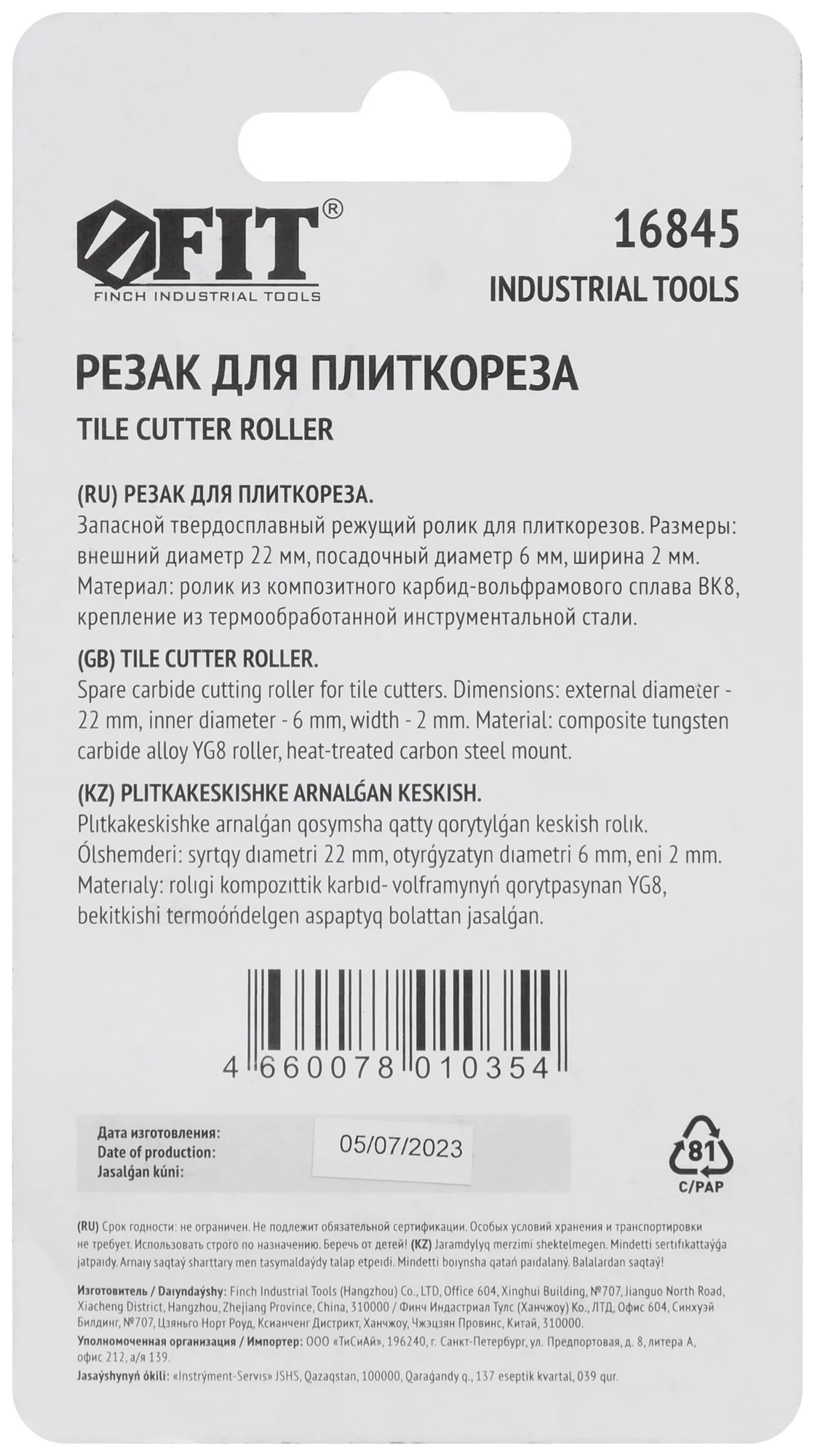 Выберите резак для плиткореза FIT 16845, чтобы обеспечить качественный и точный рез плитки в ваших проектах.