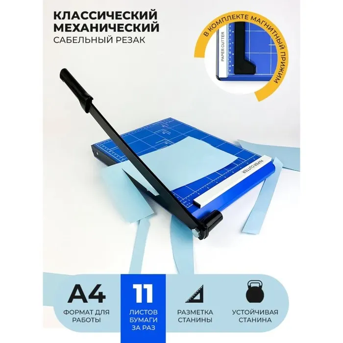 Резак сабельный A4, резка до 12 листов, длина реза 300 мм, металлическая основа, Гелеос РС A4, резка до-12 — Характеристики