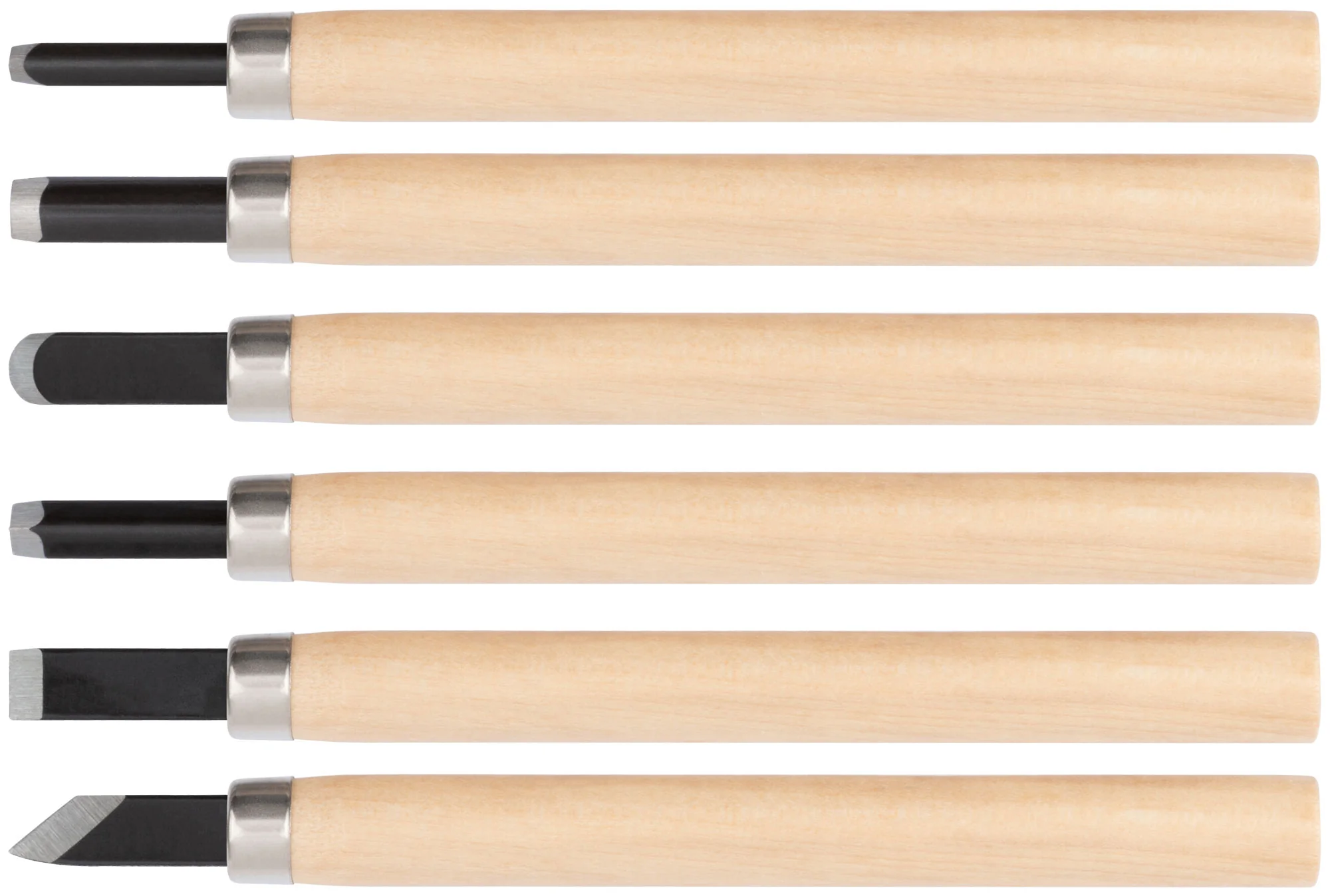 Идеальный инструмент для мастеров, занимающихся резьбой по мягкой древесине и линолеуму. Набор из 6 резаков позволяет выполнять различные художественные работы с высокой точностью и качеством.