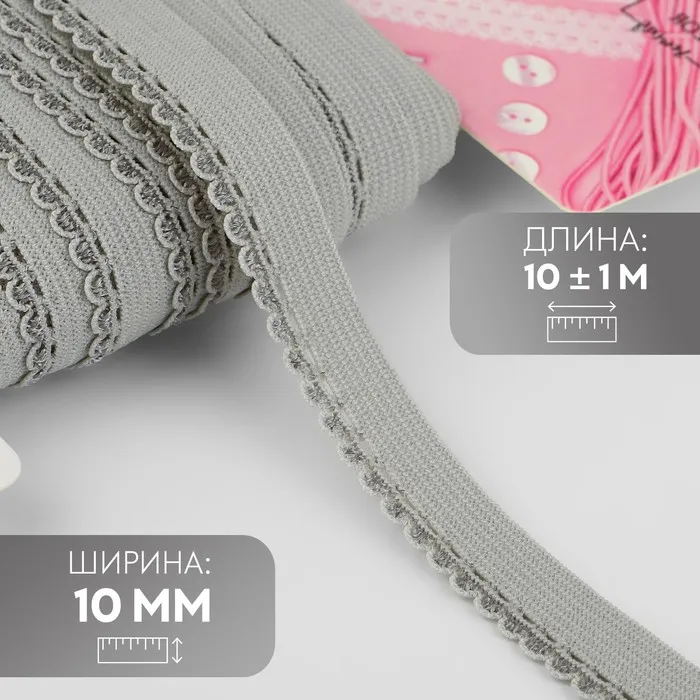 Резинка ажурная бельевая, 10 мм, 10±1 м, серая