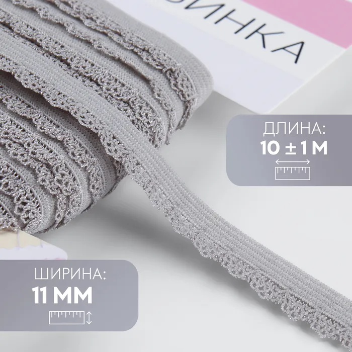 Резинка ажурная бельевая, 11 мм, 10±1 м, серая