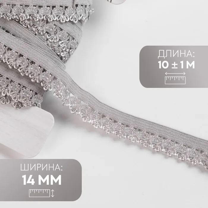 Резинка ажурная бельевая, 14 мм, 10±1 м, серая