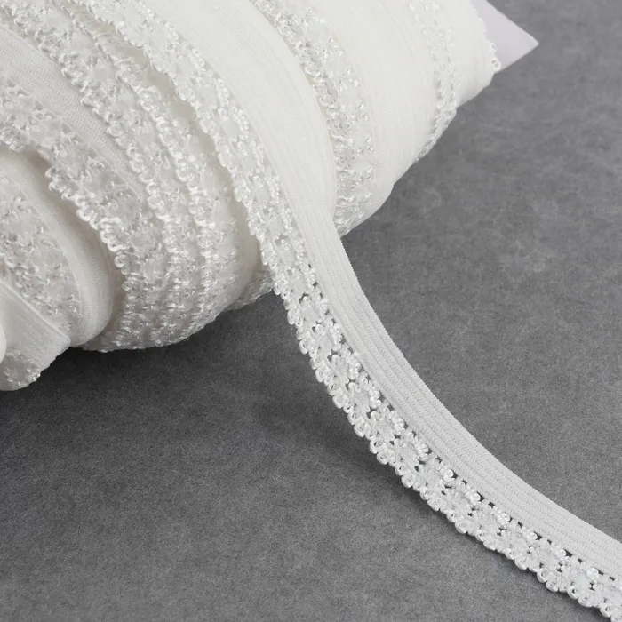Ажурная резинка — это тонкая и эластичная лента с красивым плетением, которая придаст изделиям изысканный вид и яркий акцент. Преимуществом ажурной резинки является прочность, способность легко растягиваться и обеспечивать комфортную посадку. Применяется для окантовки трусиков по верхнему срезу и вырезу ног, края чашек бюстгальтера, а также для отделки краёв юбок, блузок, платьев, для создания декоративных элементов на рукавах или воротниках, для декорирования штор, покрывал, подушек или скатертей.
