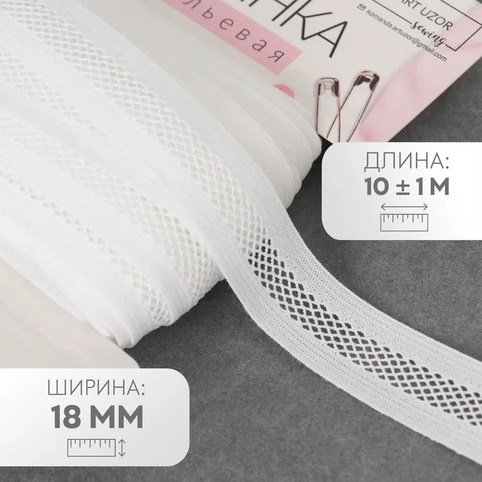 Резинка декоративная бельевая, 18 мм, 10±1 м, белая — Характеристики
