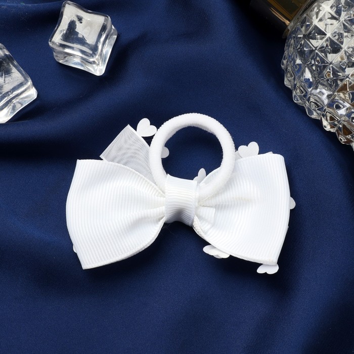 Резинка для волос бант «Школьница», элит сердца, 8×4 см, белая — Характеристики