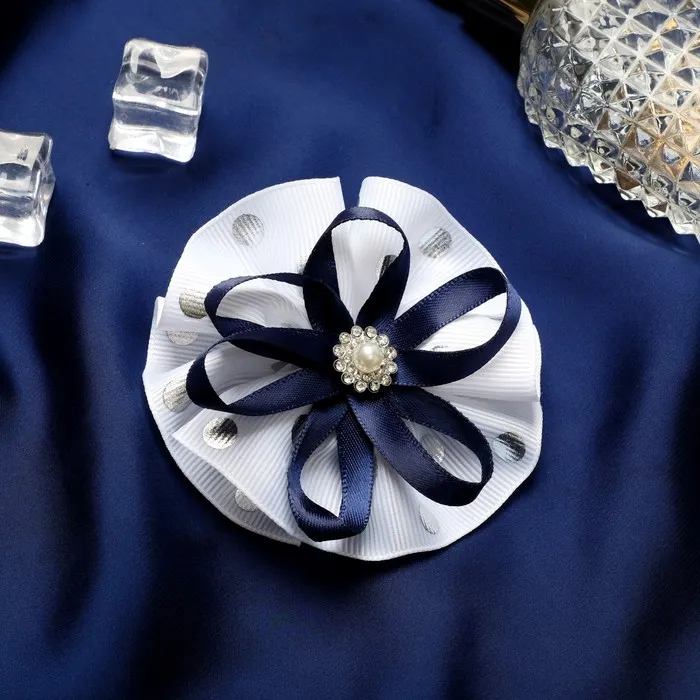 Привлекательная резинка для волос с бантом станет незаменимым аксессуаром для маленькой модницы. Сочетание сине-белого цвета в горошек и очаровательной ленточки придаёт изделию игривый, но нарядный вид, подходящий для школьных будней и праздничных мероприятий.