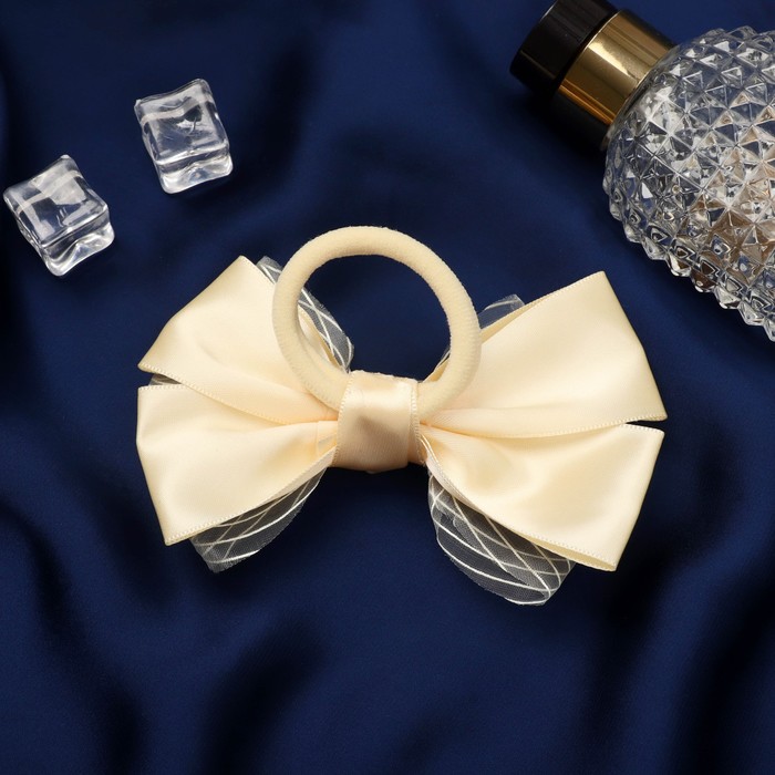 Резинка для волос бант "Школьница" классика двойной полоски, 11х7 см, бежевый — Характеристики