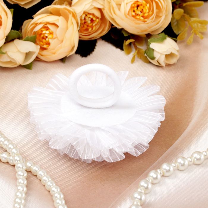 Белый аксессуар для волос — элегантное решение для школьных будней юной леди. Изготовлен из текстиля и пластика, этот маленький модный акцент подарит комфорт и стиль на каждый день. Диаметр 7 см подходит для создания причесок любой сложности, придавая образу аккуратность.