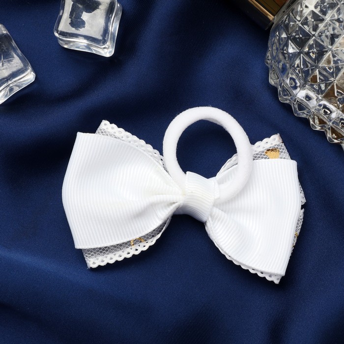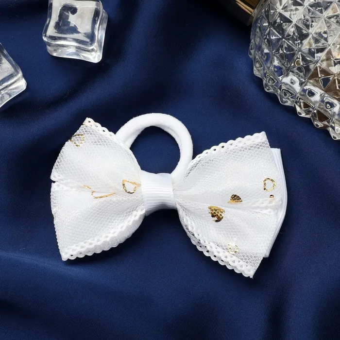 Резинка для волос бант «Школьница», сердца сияние, 8×4 см, белая — Характеристики