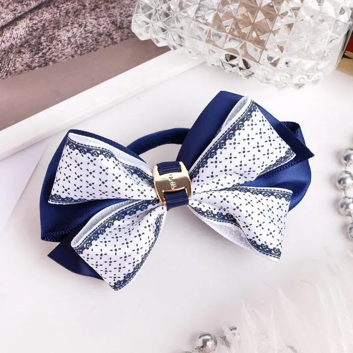Резинка для волос бант «Школьница», текстура, 9.5 см, бело-синяя — Характеристики
