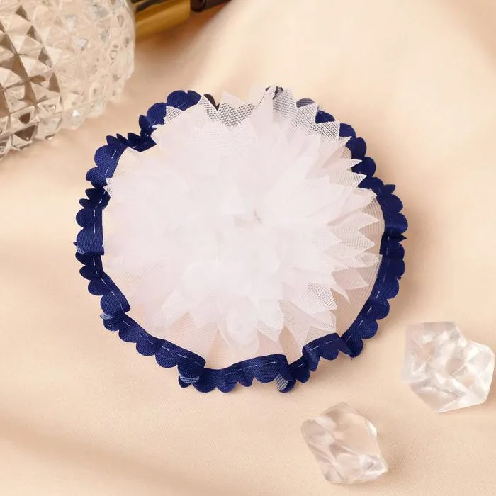 Резинка для волос бант"Синий кантик" пышный, 6,5 см, сине-белый