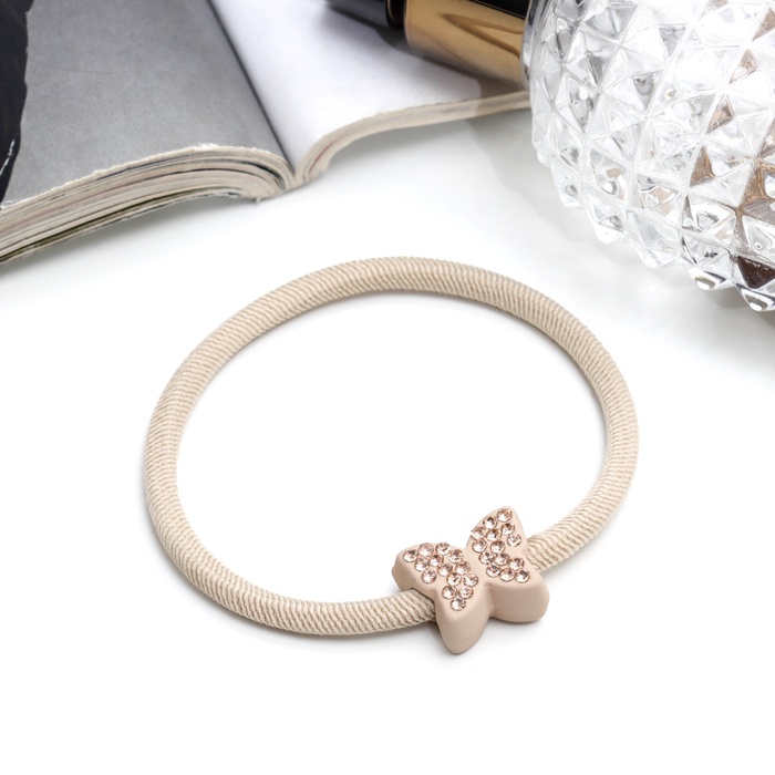 Элегантная резинка для волос с бабочкой станет стильным акцентом вашего повседневного образа. Этот бежевый аксессуар высотой 5 см сочетается с широким спектром нарядов, добавляя утонченность и женственность. Изготовленная из легкого пластика и текстиля, эта резинка создана, чтобы удерживать ваши волосы комфортно и надежно в течение дня.