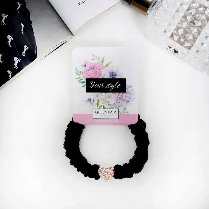 Резинка для волос «Блестящая сказка», сердце, 7 см, чёрная — Характеристики