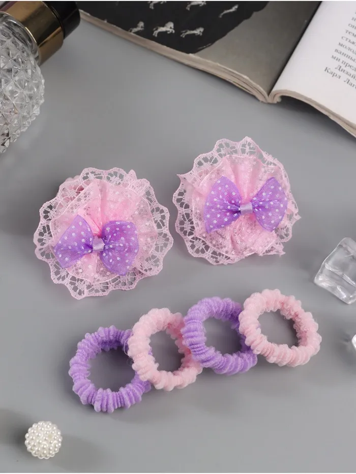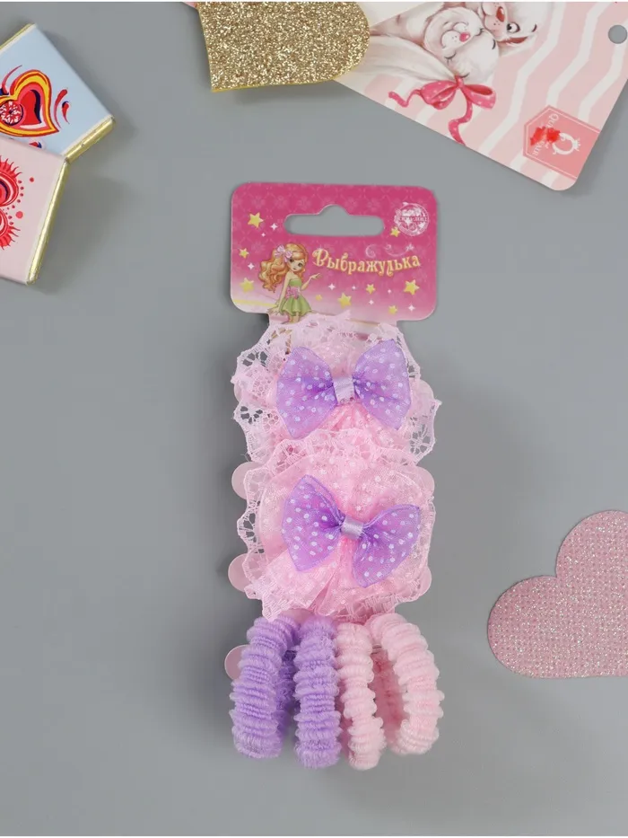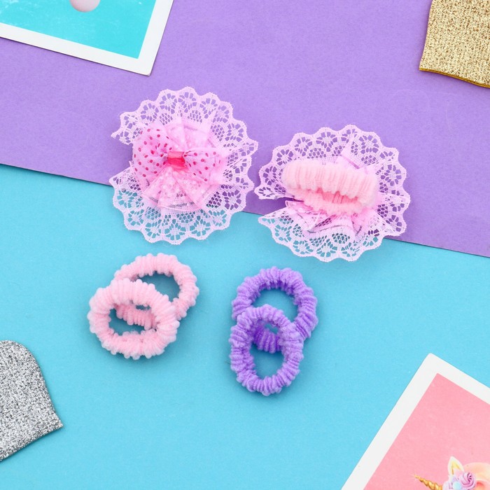 Резинка для волос «Кружево», банты, набор 6 шт., розово-сиреневая — Характеристики