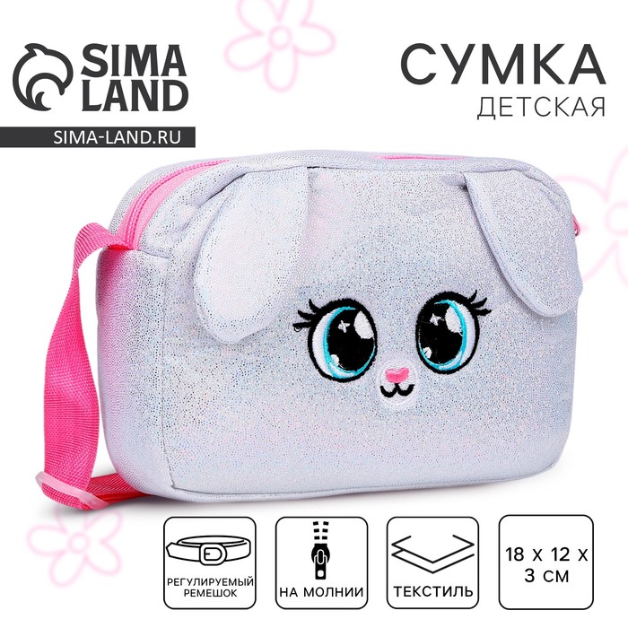 Сумка детская для девочки на молнии, длинный ремень, серебристая