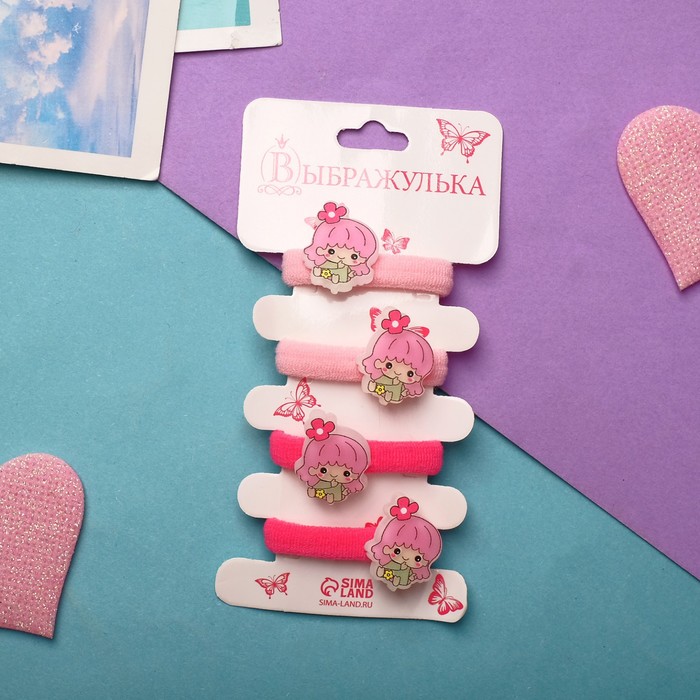 Резинки для волос «Бабочка глянец», набор 4 шт., красная, розовая
