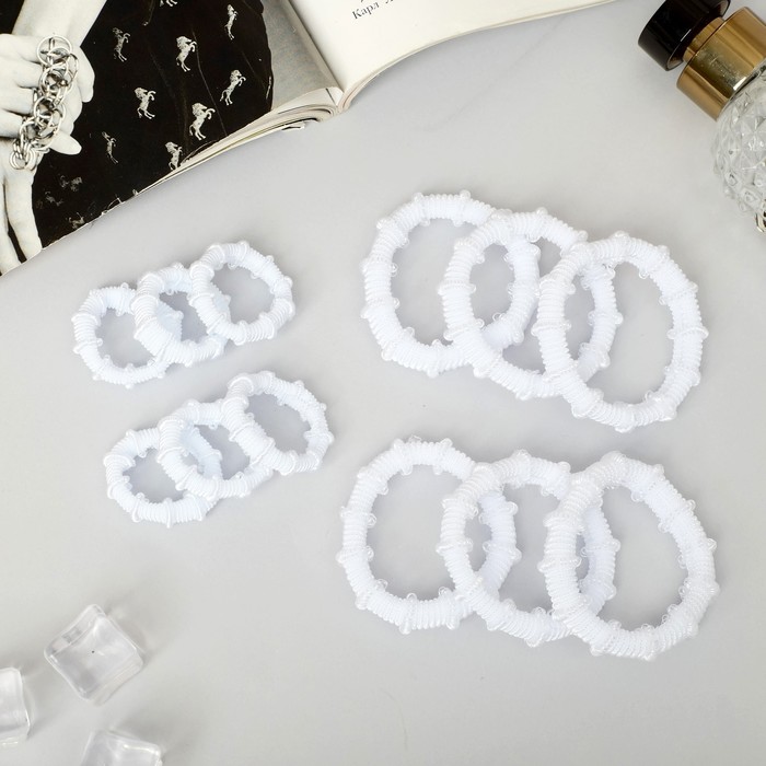 Резинка для волос "Махрушка" (набор 12 шт) 2,5 см и 4,5 см, белый — Характеристики