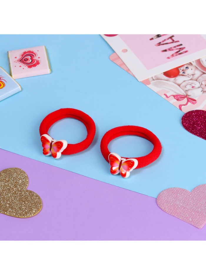 Резинка для волос «Маленькая радость», набор 2 шт., бабочка, 3.5 см, красная