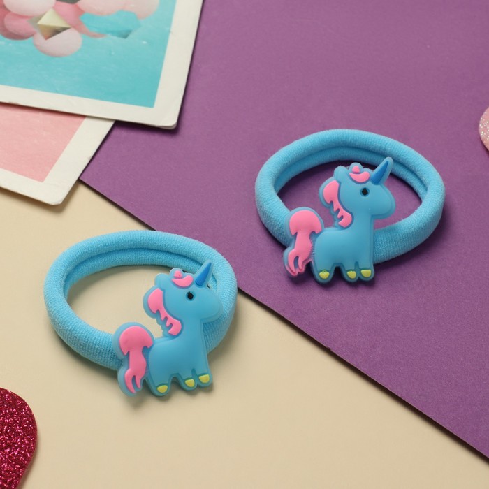 Резинка для волос "Мелодия" (набор 2 шт) единорог, 4 см, голубой