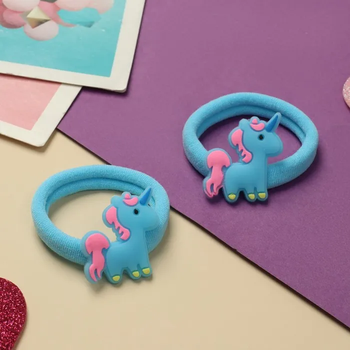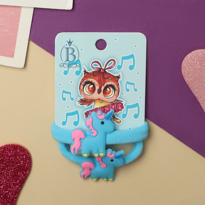 Резинка для волос "Мелодия" (набор 2 шт) единорог, 4 см, голубой — Характеристики