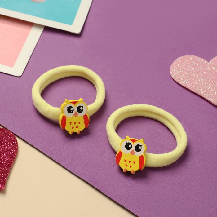 Резинка для волос "Мелодия" (набор 2 шт) совушка, 4 см, жёлтый