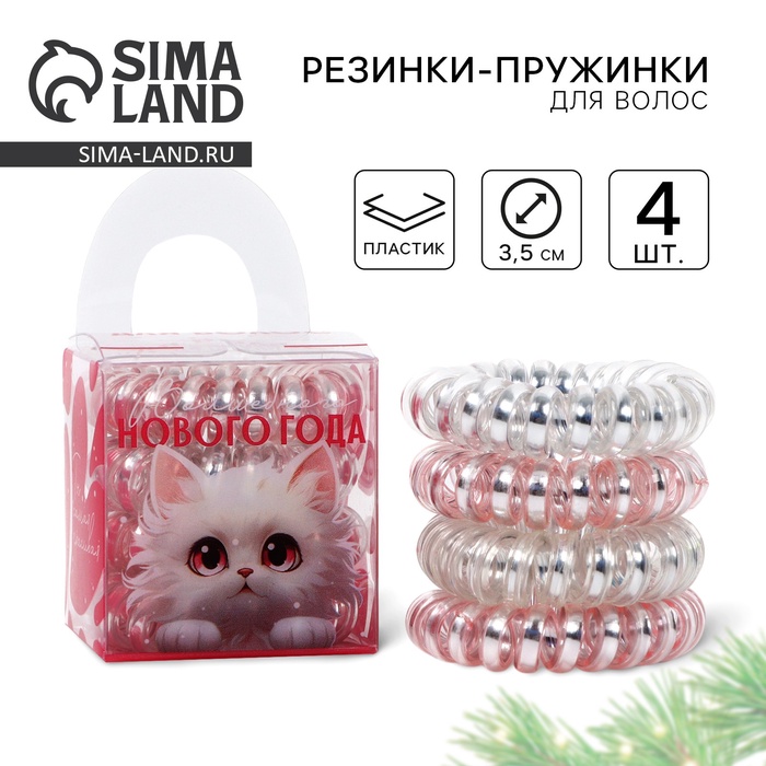 Резинка для волос новогодняя «Волшебного нового года», 4 шт., диам 3.5 см — Характеристики