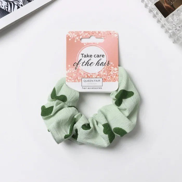 Резинка для волос «Орбита», классик сердце, 10 см, зелёно-белая