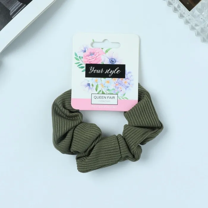 Резинка для волос «Орбита», классика полоска текстура, 9 см, зелёная