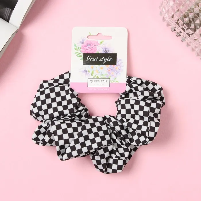 Резинка для волос «Орбита», клетка мини стиль, 12 см, чёрно-белая — Характеристики
