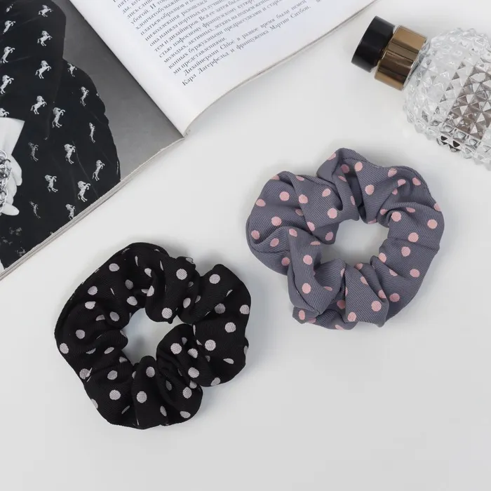 Резинка для волос "Орбита" (набор 2 шт) Ариадна горох колор, 10 см, чёрный серый