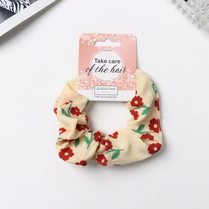 Резинка для волос «Орбита», цветы лето, 10 см, красно-бежевая — Характеристики