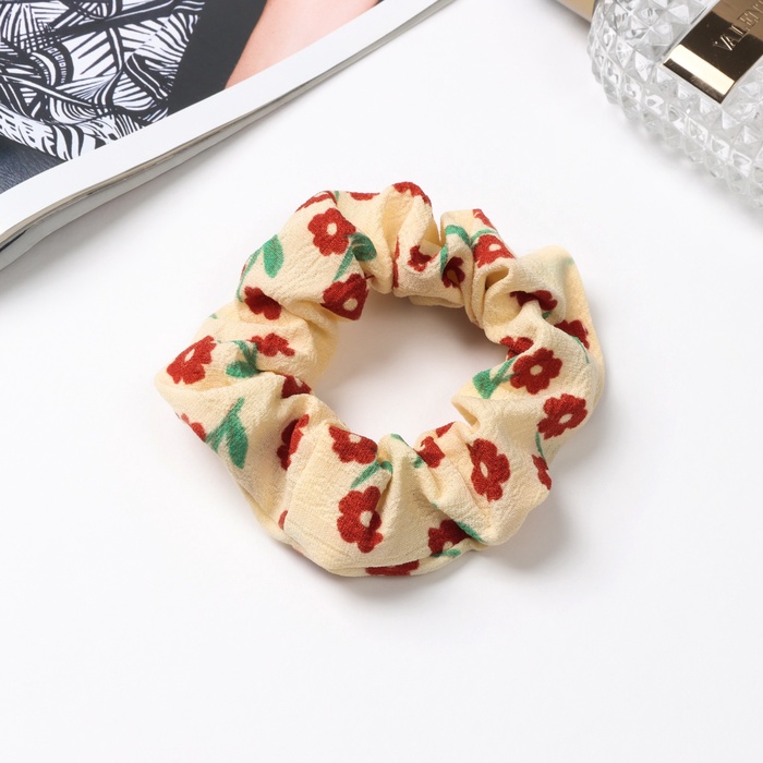 Резинка для волос «Орбита», цветы лето, 10 см, красно-бежевая