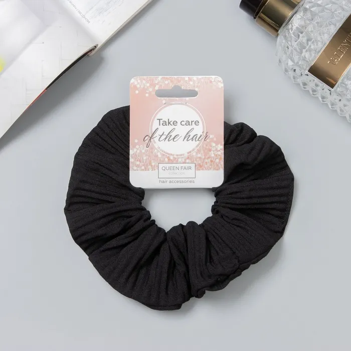 Чёрная тканевая резинка для волос диаметром 12 см — универсальный аксессуар для повседневного образа. Мягкая, но прочная, она не пережимает волосы и не оставляет заломов. Подходит для любых причёсок — от высокого хвоста до свободного пучка.