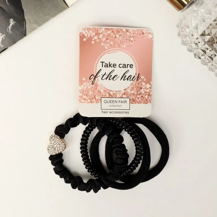 Резинка для волос QF «Милена», сердце блеск, 4 см, набор 4 шт., МИКС — Характеристики