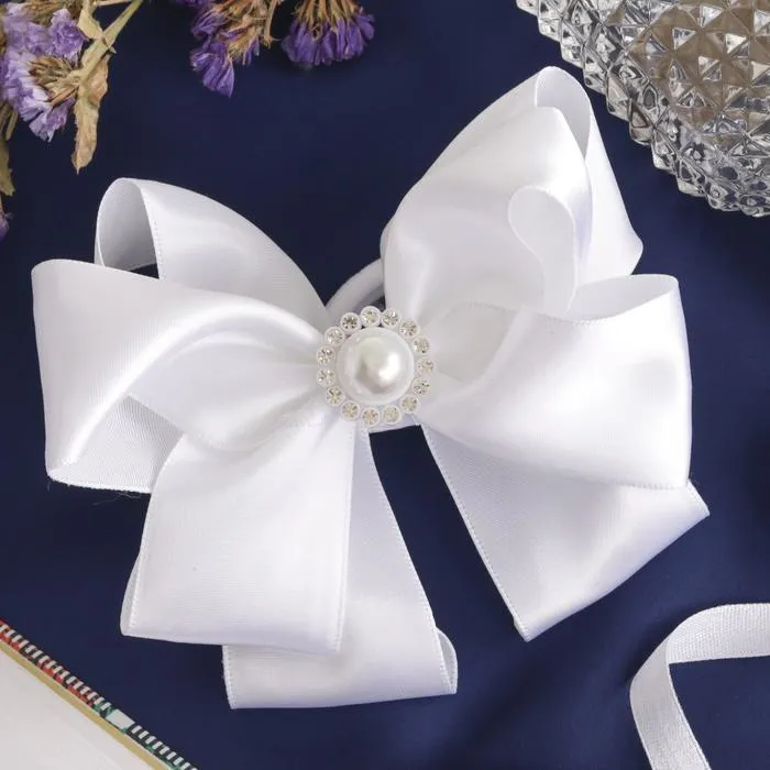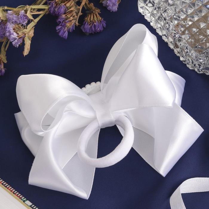 Резинка для волос бант «Школьница», цветок жемчужный, d=8 см, белая