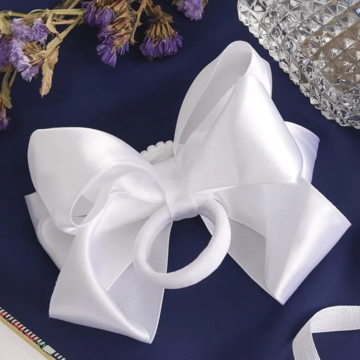 Резинка для волос "Школьница" бант двойной атлас цветок, 12 см, белый — Характеристики