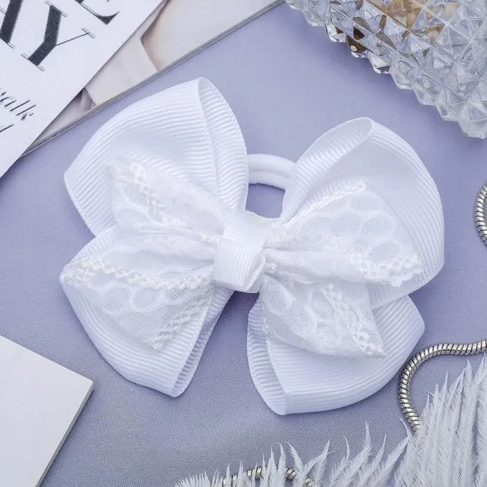 Резинка для волос "Школьница" бант кружева, 9 см, белый