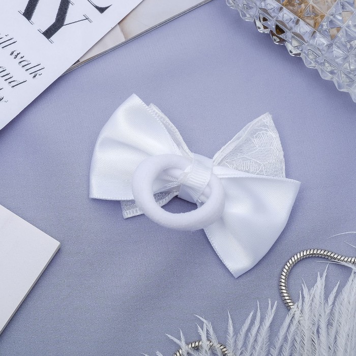 Резинка для волос "Школьница" бант кружевной, 7 см, белый — Характеристики