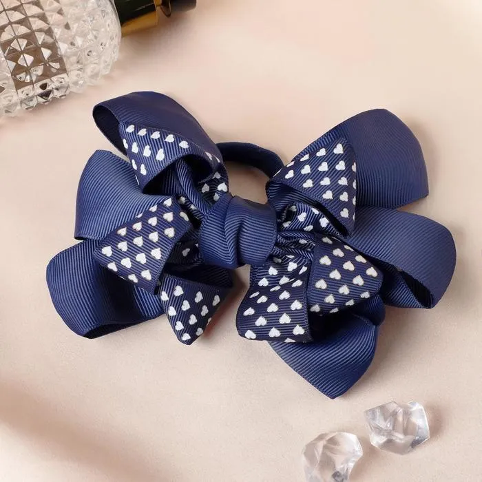 - Яркий акцент: резинка с бантом превращает обычную прическу в выразительную деталь гардероба. Симпатичный узор в виде сердечек добавляет игривости и нежности.