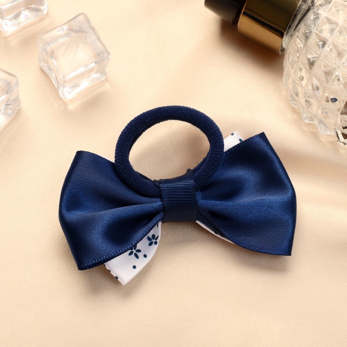 Резинка для волос «Школьница», бант цветочки, 6.5 см, бело-синяя — Характеристики