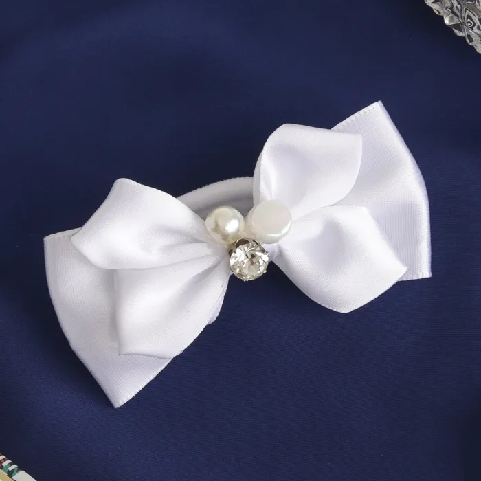 Резинка для волос «Школьница», двойной бант бусинки, 7.5 см, белая — Характеристики