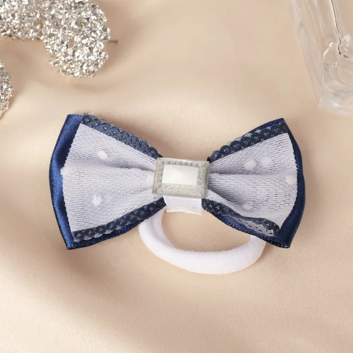 Резинка для волос «Школьница», двойной, горох,6.5 см, сине-белая — Характеристики