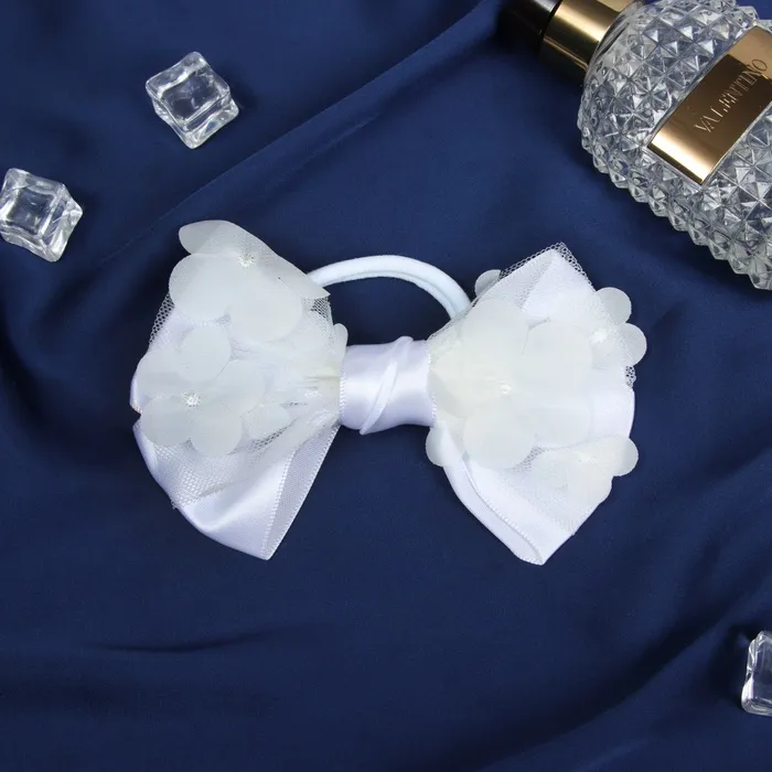 - Элегантный дизайн: резинка выполнена в нежном белом цвете и украшена цветочными элементами, что делает ее универсальным аксессуаром для любого наряда и случая – от школьных будней до праздничных мероприятий.