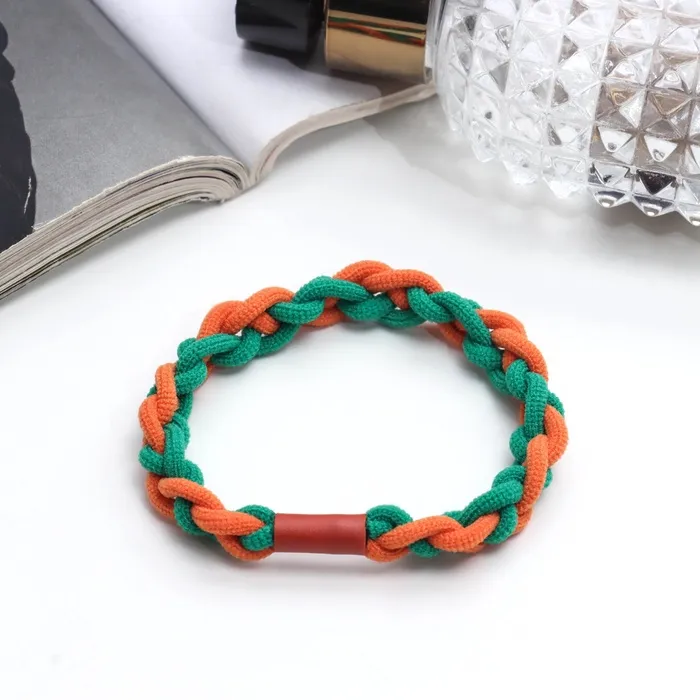 Резинка для волос «Спорт элит», двойное плетение, 5 см, оранжево-зелёная