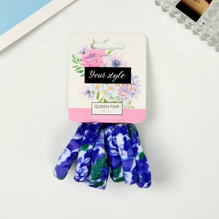 Резинка для волос "Цветочный орнамент" (набор 6 шт) незабудки