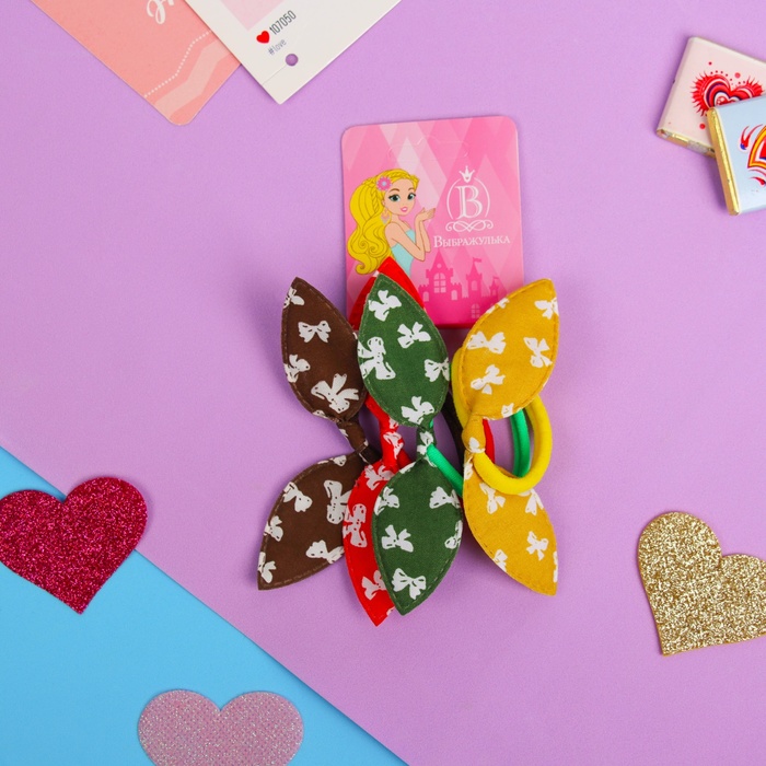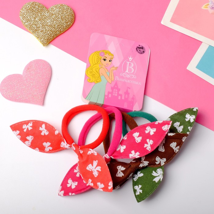 Резинка для волос "Веселые ушки" (набор 4 шт) бантик, микс — Характеристики