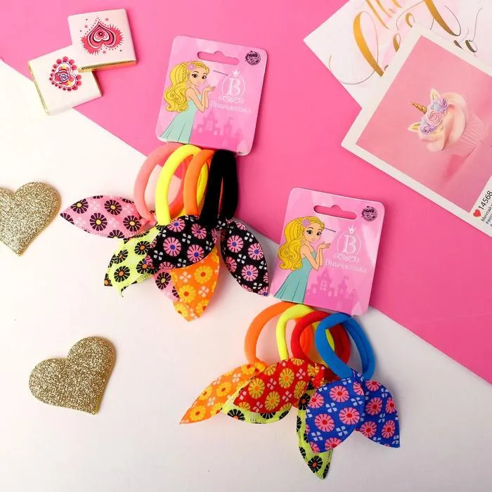 Резинка для волос "Весёлые ушки" (набор 4 шт) ромашки, 4 см, микс — Характеристики