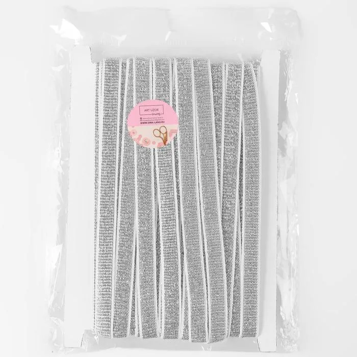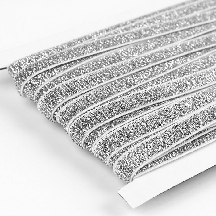 Резинка с глиттером, 10 мм, 10±1 м, цвет белый, серебряный — Характеристики
