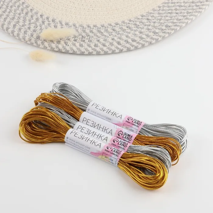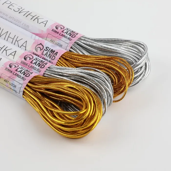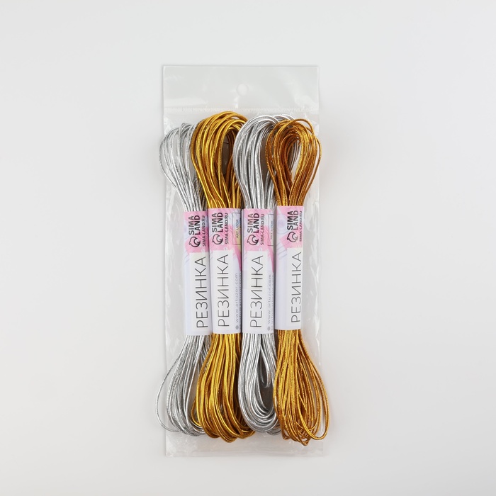 Резинка шляпная, 1/2 мм, 7 м, 4 шт., цвет золотой, серебряный — Характеристики